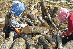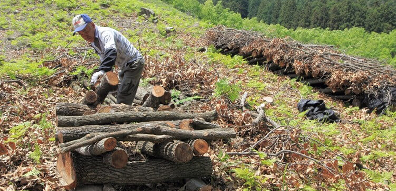 In the autumn of the second year after incubation, the logs are moved to Hoda-ba – a place suitable for shiitake mushroom growth.