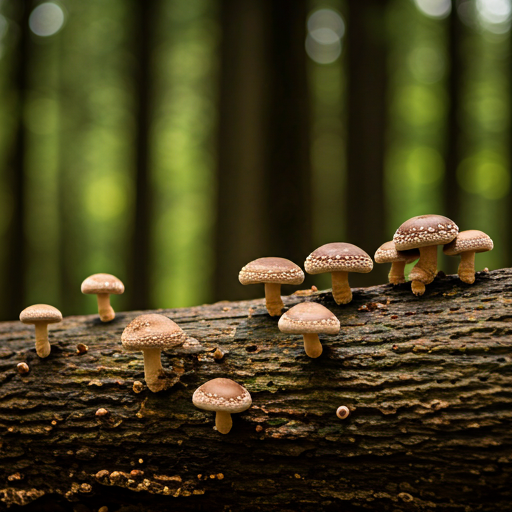 As the shiitake mycelium begins to grow, the wood logs are covered with branches and leaves to prevent sun exposure and retain moisture, creating an ideal growth